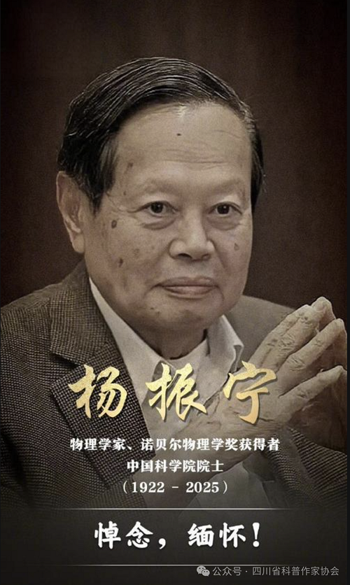 本刊讯(颜菁菁)享誉世界的物理学家、诺贝尔物理学奖获得者,中国科学院院士,清华大学教授、清华大学高等研究院名誉院长杨振宁先生,因病于2025年10月18日在北京逝世,享年103岁。